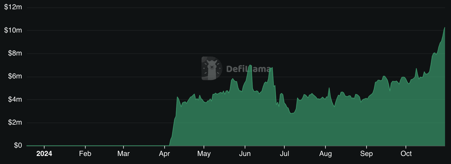 Although relatively small, the ezETH TVL on Base increased significantly over the last month from around $4m to $10m. This coincides with the underlying growth of the Base L2 chain.