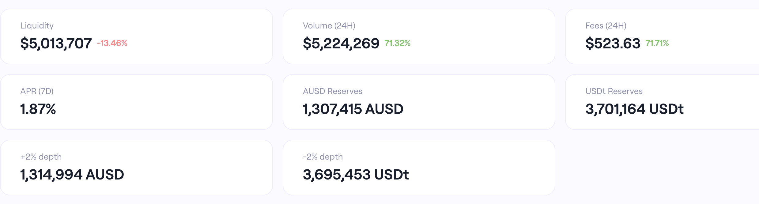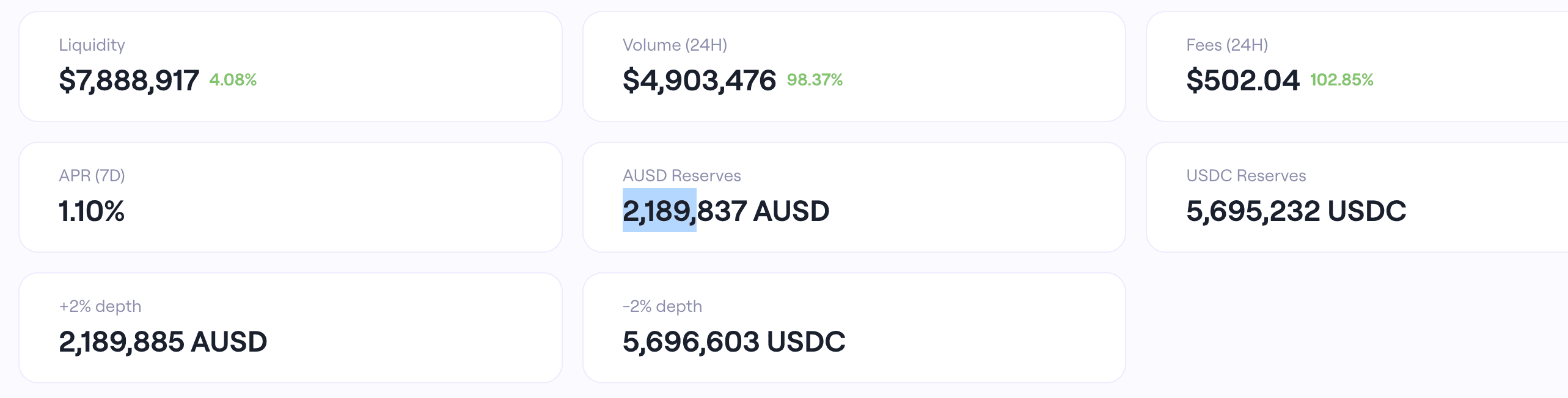 AUSD/USDC pool maintains around 2M AUSD available for swaps