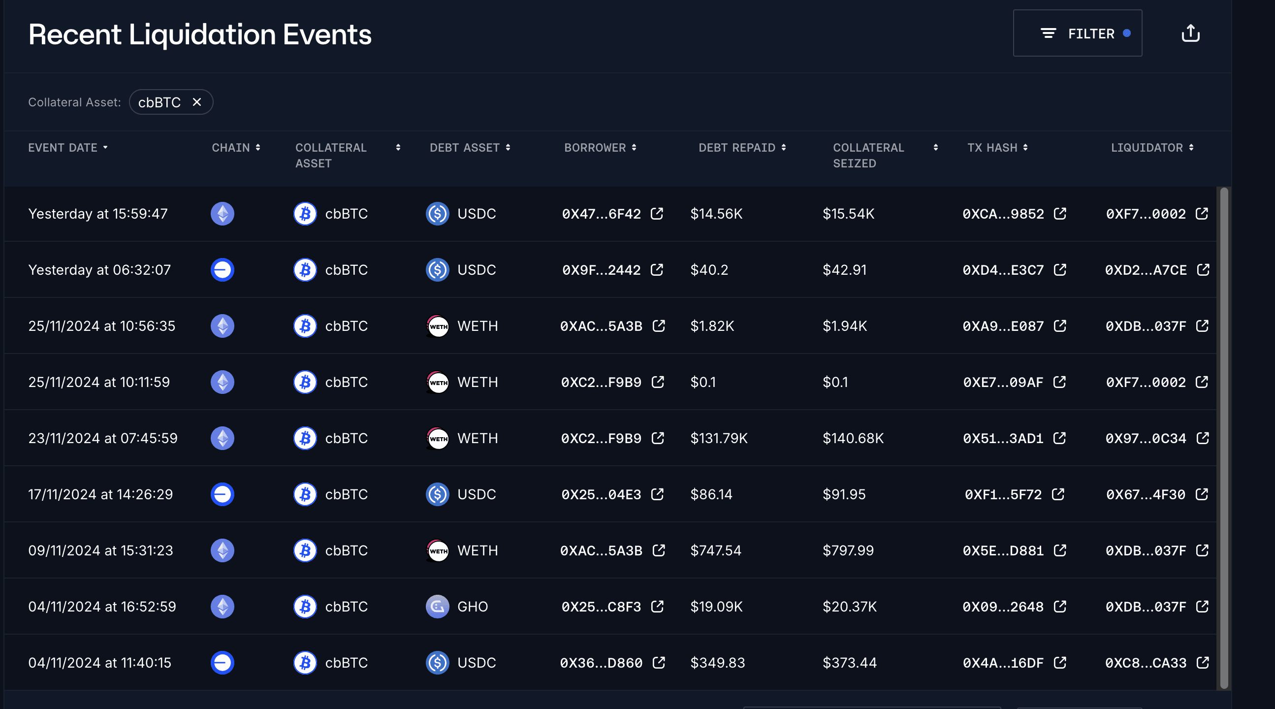 Although cbBTC liquidations occur across these networks, a higher liquidation penalty may be necessary to ensure liquidators can profitably acquire and exchange collateral on other venues.