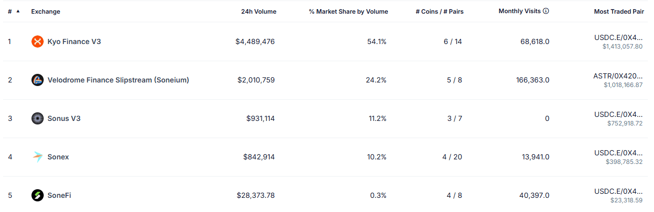 Source: Soneium DEXs, Coingecko, February 28, 2025.