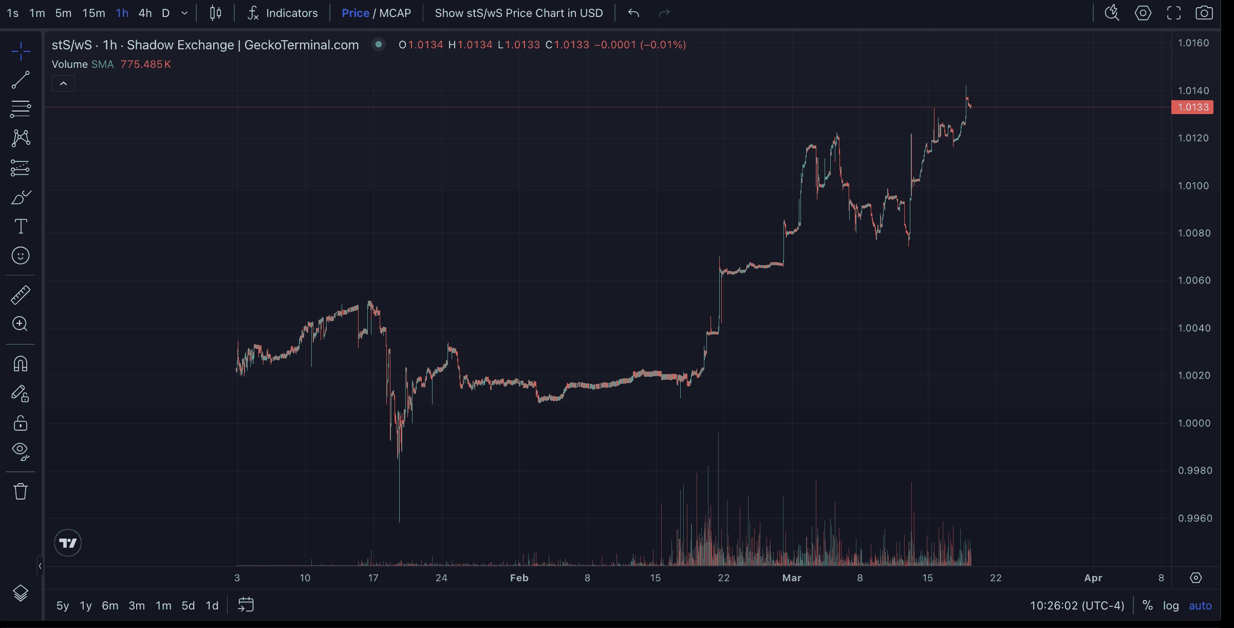 Source: $stS / $S, Shadow Exchange via GeckoTerminal_, March 19th, 2025_
