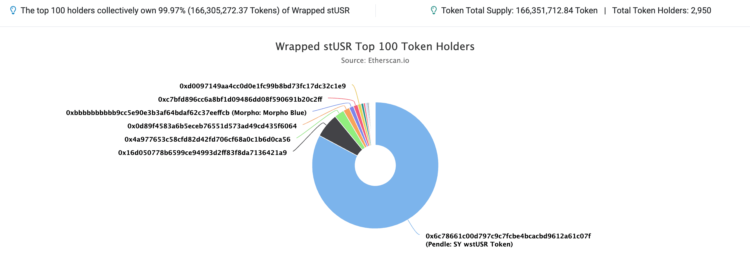 Over 80% of the token supply is concentrated on Pendle - SY wstUSR: 0x6c78661c00D797C9c7fCBE4BCacbD9612A61C07f.