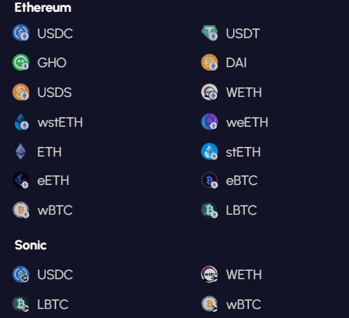 Vaults are implemented either as Collateral Vaults or Staking Vaults. Collateral Vaults are Ethereum-based vaults that accept and deploy assets to whitelisted yield strategies in DeFi protocols. Staking Vaults are Sonic-based vaults that enable yield-bearing through scToken staking, deploying scTokens across various DeFi protocols.