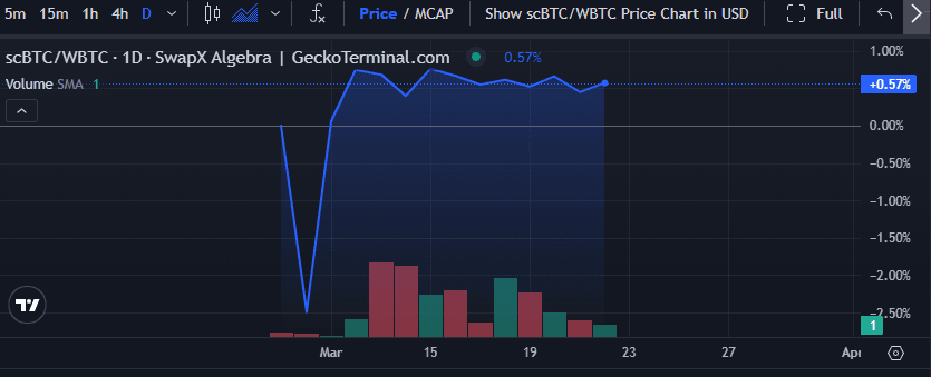 Source: GeckoTerminal, scBTC/WBTC, March 22nd, 2025