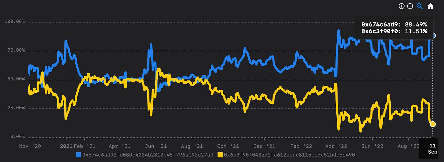 On April 7th of this year, the Curve DAO passed a vote to raise the A parameter for the USDN/3CRV pool from 100 to 250. It was argued by the proposer that ‘Raising A will decrease “spurious” arbitrage in USDN pool since USDN is always redeemable through the Neutrino protocol smart contract at 1:1 ratio’.