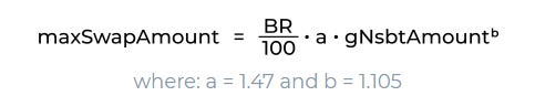 - The max daily swap amount of USDN>WAVES swaps depends on the current BR value. The lower the BR, the lower the maximum swap amount, following the formula below. This decreases the downward pressure on the BR. The following table shows that big gNSBT holders lose 95% to 99% of their swapping power at the current BR of 10%.