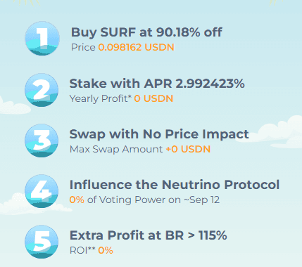 Like NSBT, staking SURF rewards users with gNSBT, allowing them to swap USDN<>WAVES based on the amount staked.