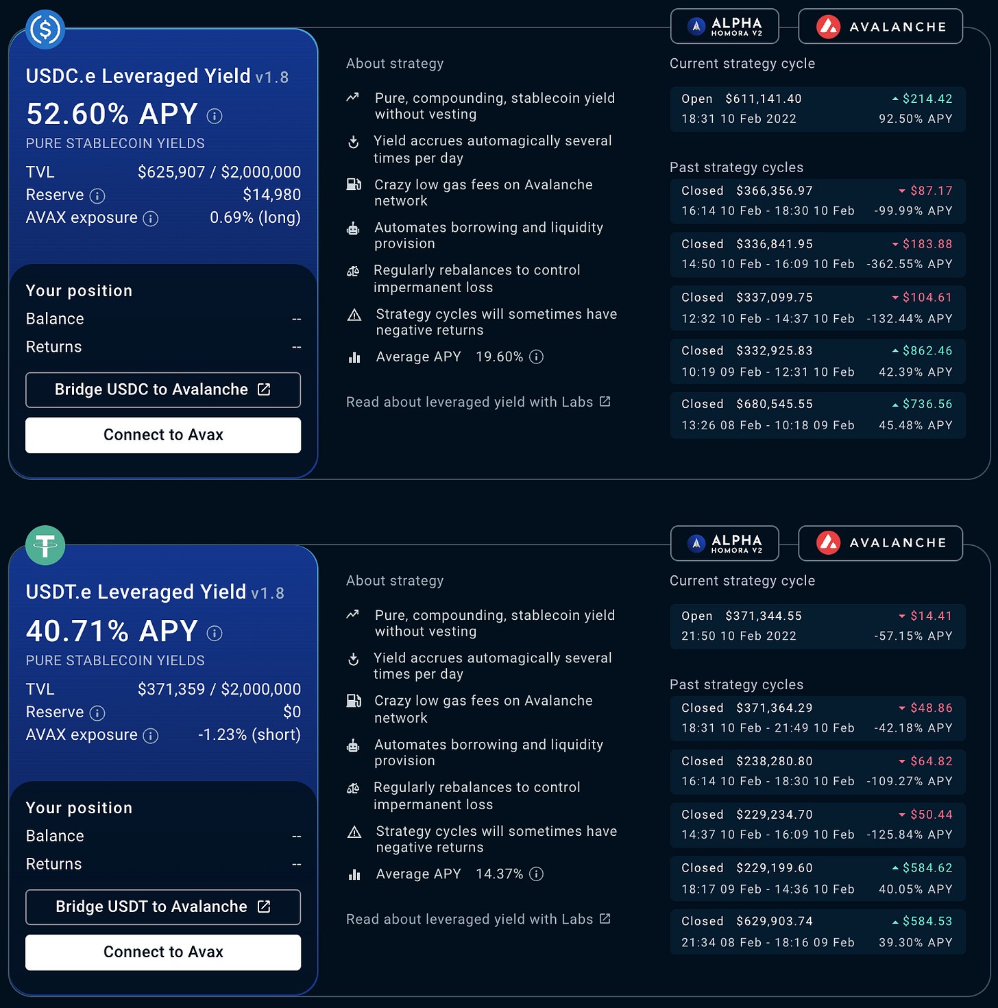 The protocol charges 5% performance fees for PWRD and Vault investors and a 10% performance fee for their experimental Labs product, an experimental leveraged yield farming strategy that uses the Alpha Homora V2 protocol on Avalanche. There exists a 0.5% withdrawal fee for getting out of the strategies.