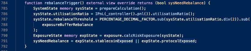 The rebalance trigger determines if the protocol is exposed to any sort of pre-determined risk.