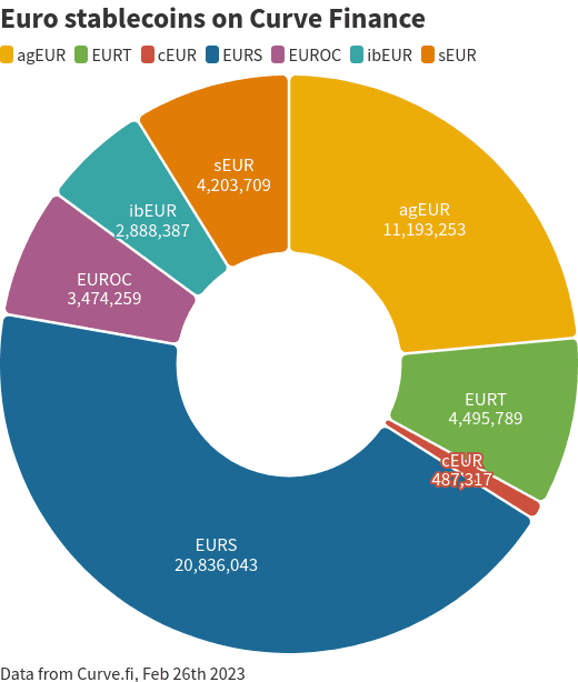 EURS represents approximately 44% of all euro stablecoins present on Curve Finance.