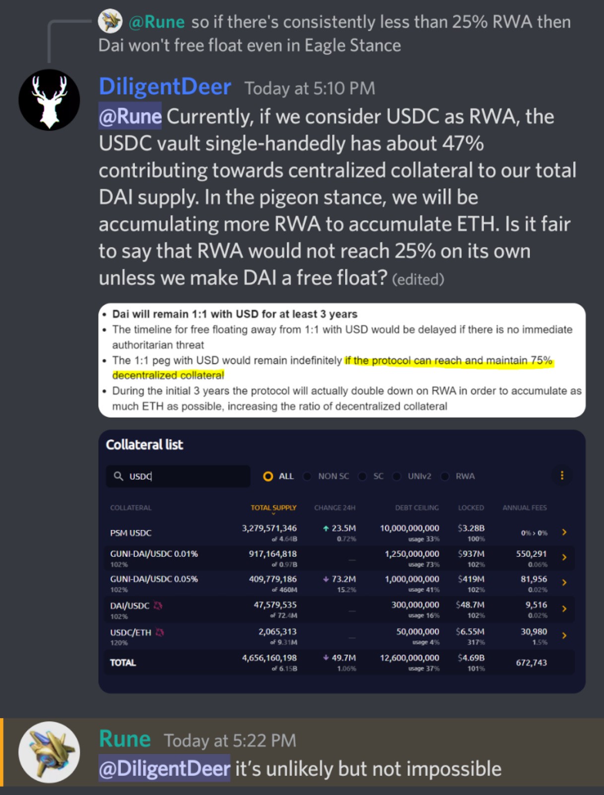 The forum post further expands on 2 powerful tools that can make free-floating $DAI a success, which implies that Rune is envisioning a free-floating $DAI and building around it.