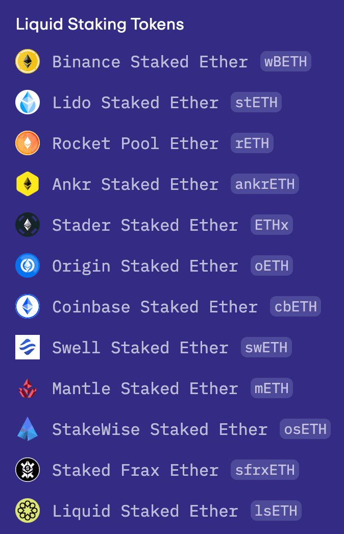 Currently, EigenDA lacks a publicly disclosed methodology for selecting acceptable restaked assets. As it stands, EigenDA supports all assets that are available for restaking through EigenLayer, as demonstrated in the accompanying illustration. This approach allows for a wide range of assets to be utilized within the network, aligning with the offerings of EigenLayer. However, it also introduces dependencies risks, which we will address more thoroughly later in this report.