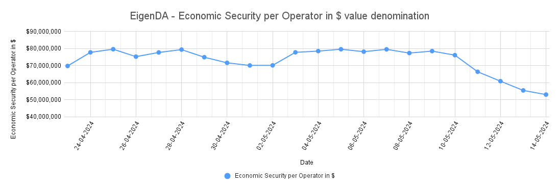 Economic Security per Operator represents the average economic security (i.e., the dollar value of restaked ETH) per operator in an AVS.