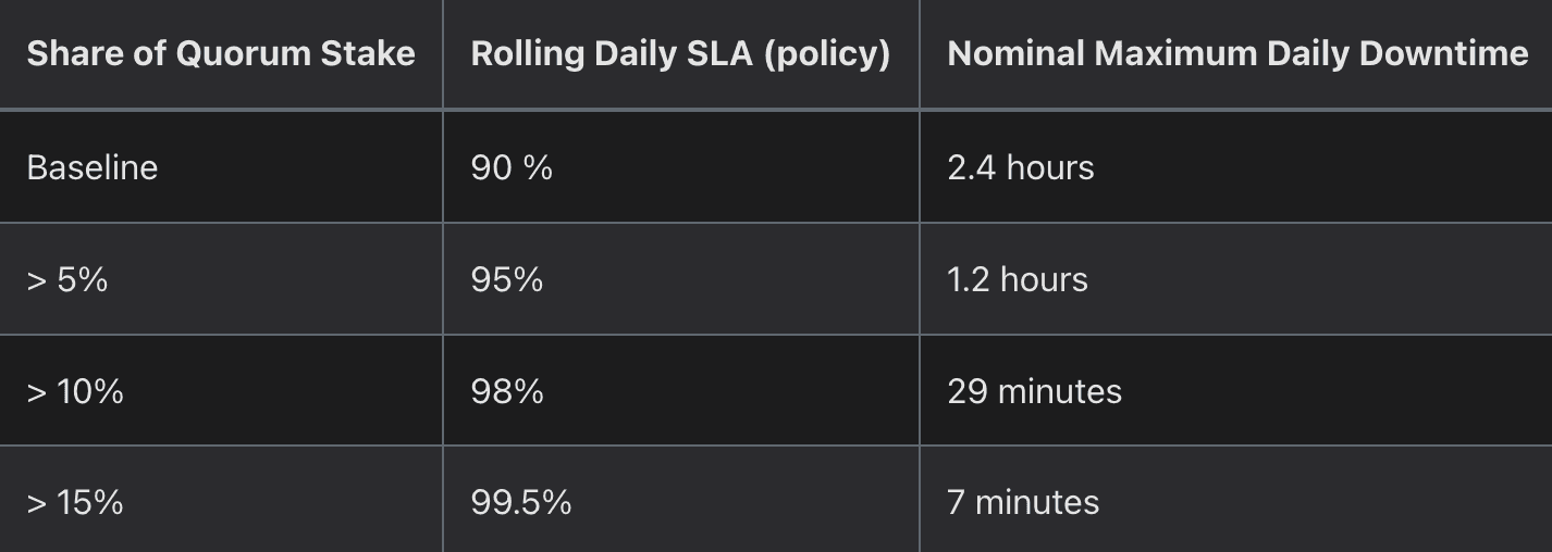 To secure EigenDA, Operators opt into a smart contract that dictates the compensation they will earn for securing the network along with the punitive measures for non-compliance, commonly referred to as "slashing" penalties. This arrangement is conducted in alignment with the Protocol Service Level Agreement (SLA) that Operators are expected to fulfill. Their obligations are detailed in the documentation that points to an automated regime of enforcing rights - e.g. "Operators can be subject to forced ejection from the protocol if they fail to meet their Rolling Daily SLA".
