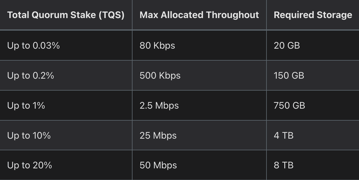 Celestia’s full nodes are tasked with broadcasting, consensus, and validation, necessitating a bandwidth of 128MB/s for downloads and 12.5MB/s for uploads. Conversely, EigenDA nodes, which are not responsible for broadcasting and consensus, require only 0.3MB/s of bandwidth. This significantly reduces the operational load on EigenDA nodes compared to Celestia.