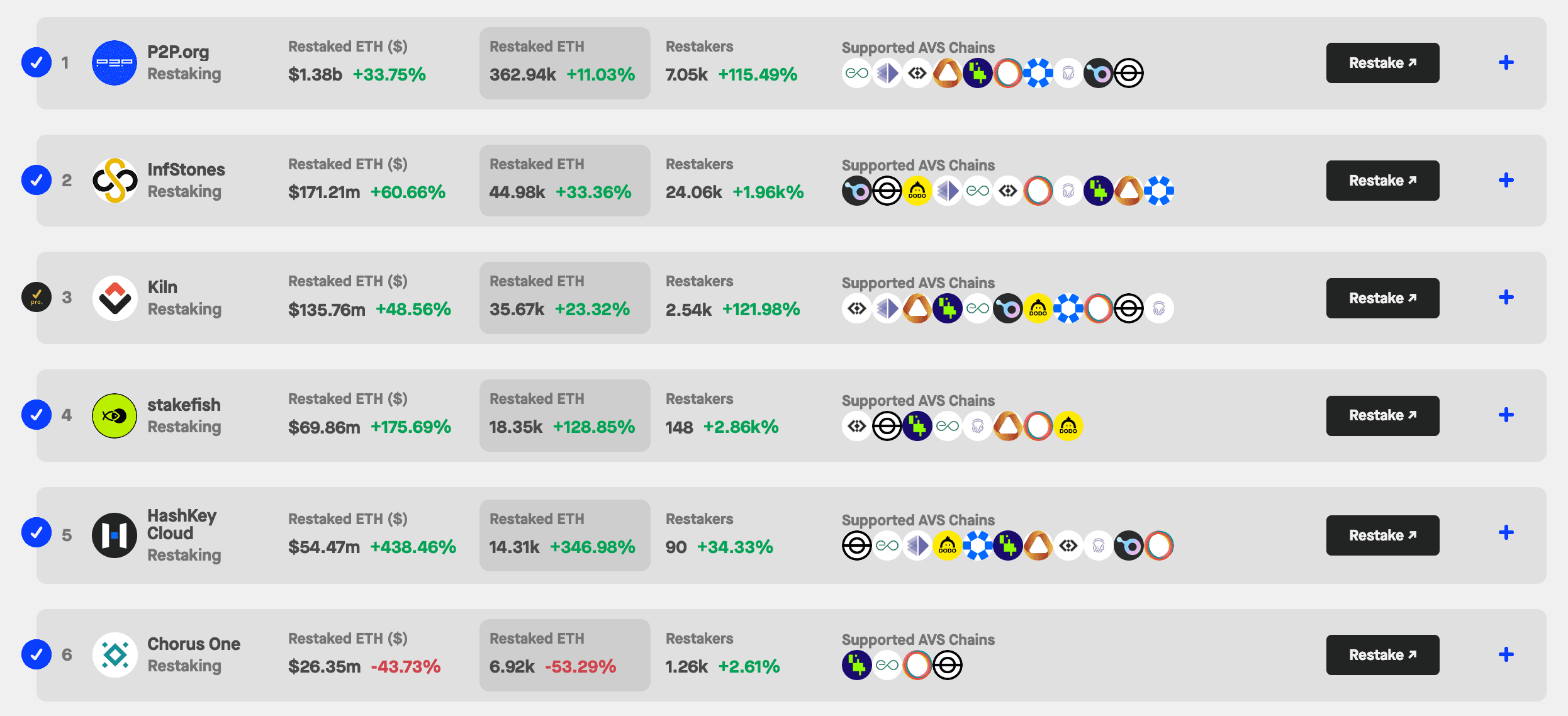 Restakers per Operator