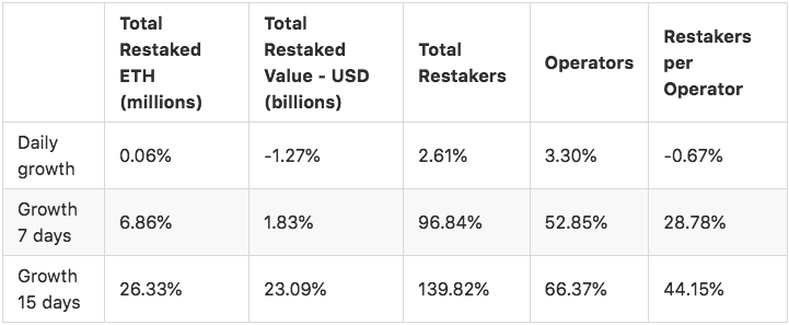 Restakers Churn Rate is an indicator used in combination with "Operator Churn Rate" that can provide insights about market supply side (from AVS perspective). At the moment we can refer on the LRT protocols as "restakers".