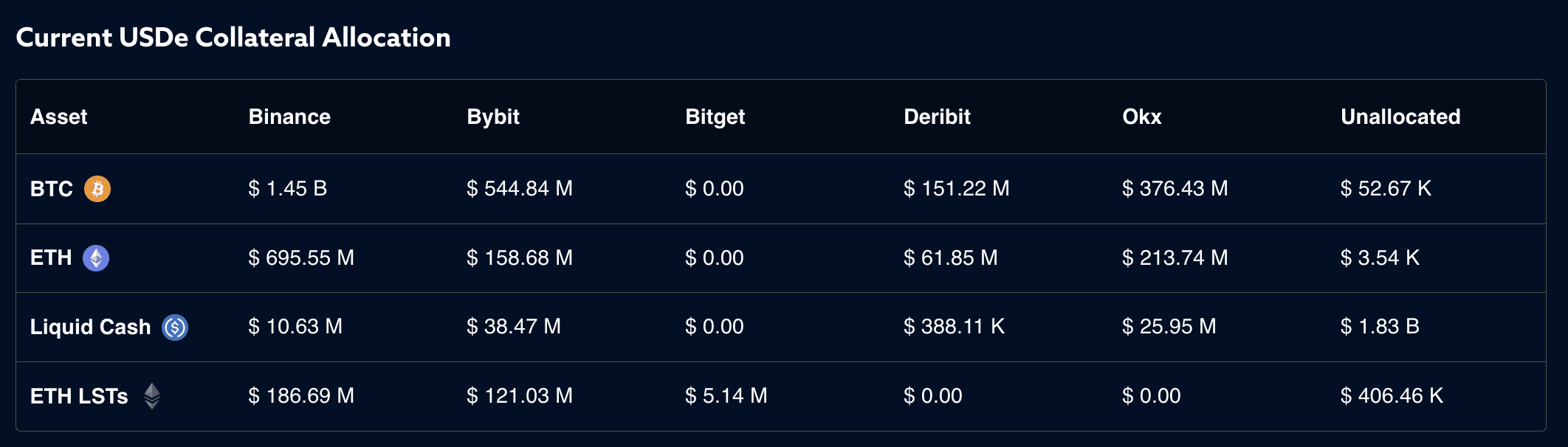 Collateral Allocation: Ethena directs the collateral among different CEXs. It can initiate asset swaps (BTC, ETH, ETH LSTs, SOL) or open/close perpetual positions.