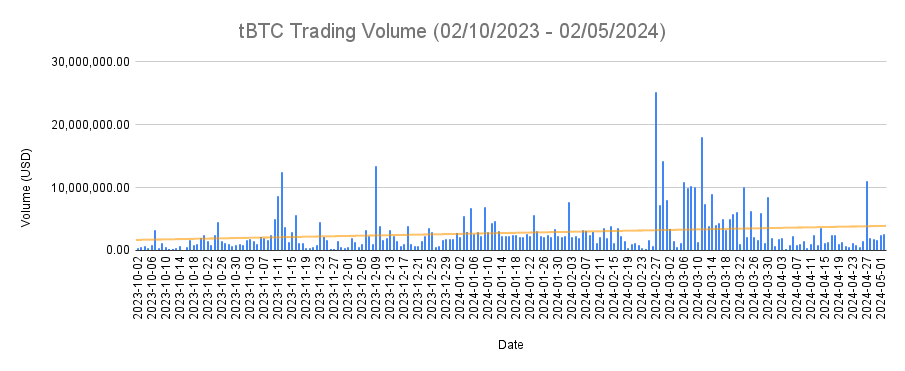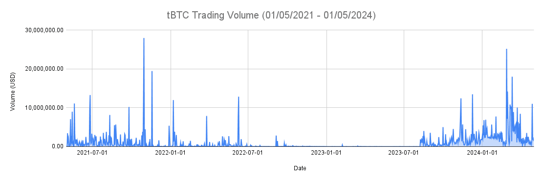 Source: Coingecko - tBTC USD (10/02/2023 - 05/02/2024)