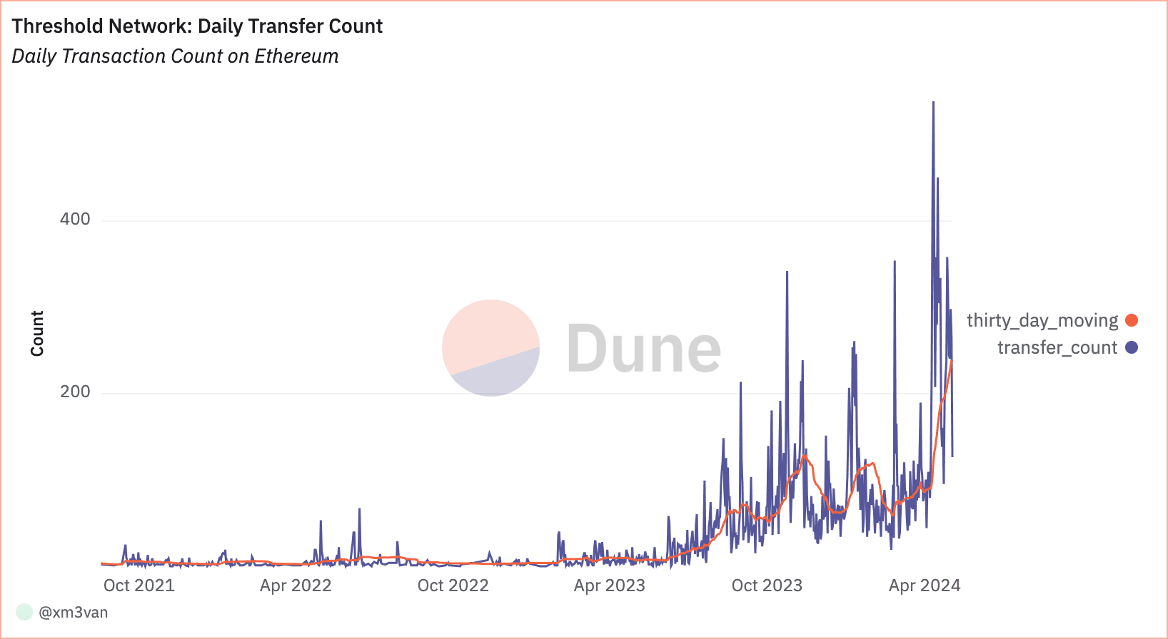 Source: Daily Active Addresses (tBTC)Threshold Network: Daily Transfer Count