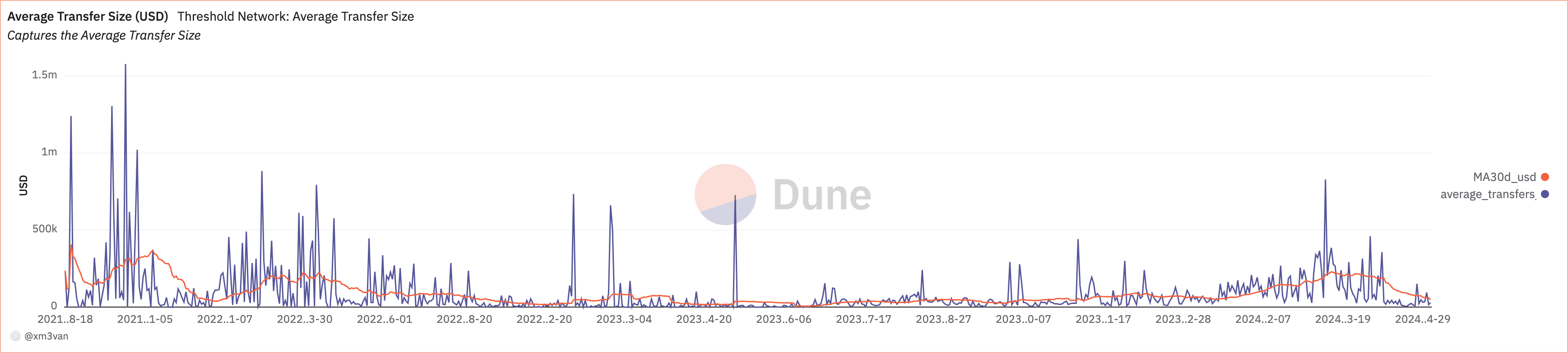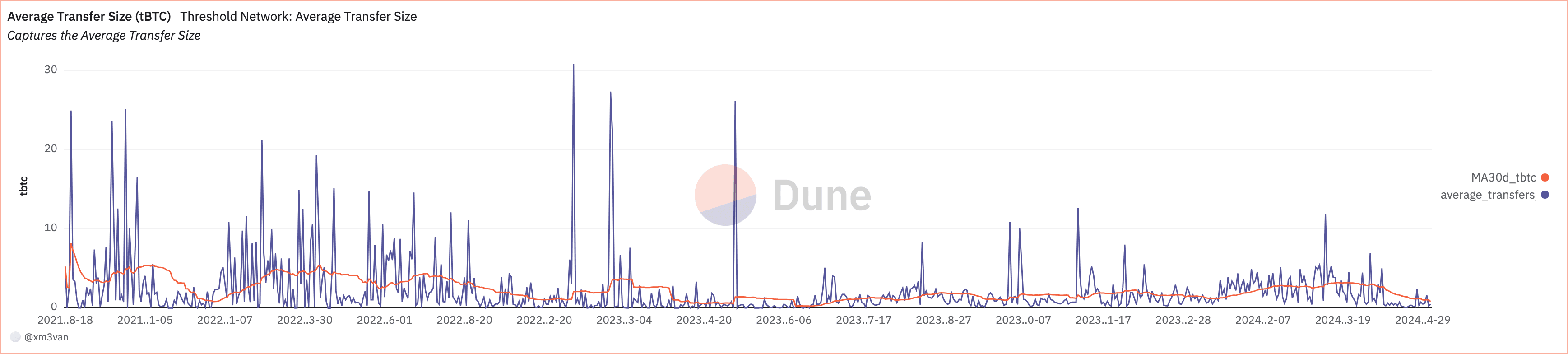 Source: Average Transfer Size (tBTC)Threshold Network: Average Transfer Size