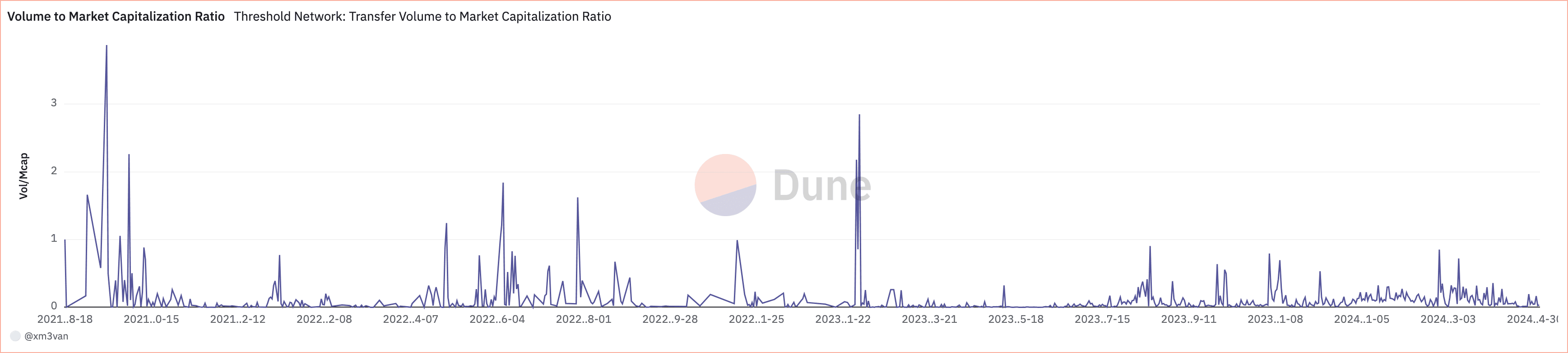 The Trading-Volume-to-Market-Capitalization Ratio (a.k.a. Turnover Ratio) is a financial metric used to normalize analysis of trading activity. Generally, a high vol-to-mcap ratio suggests high liquidity and high market interest.