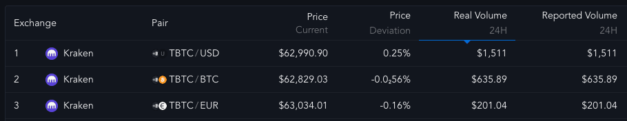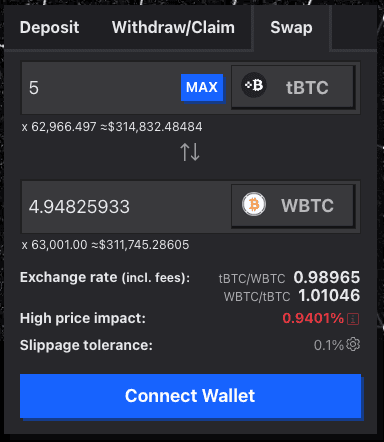 Markets: Curve tBTC/WBTC | Curve crvUSD/wstETH/tBTC | Uniswap V3's tBTC/WTBC pool