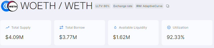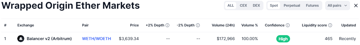 We rank wOETH as ok on liquidity (no change) because its liquidity profile has not materially changed since our previous review. The introduction of the ARM redemption mechanism positively influences OETH's liquidity profile.