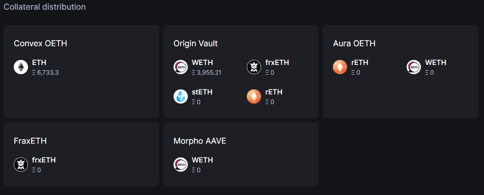 OETH remains backed 1:1 by ETH; the change to an LST model resulted in the divestment of previously held positions in other LSDs (sfrxETH, stETH & rETH) and discontinuation of lending strategies (as can be seen below). ETH proceeds were gradually staked following an initial investment window.