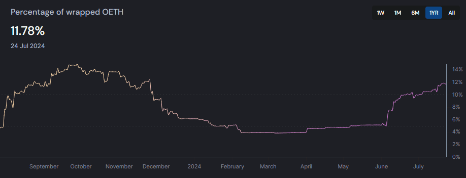 Source: Origin Analytics - Percentage of wrapped OETH