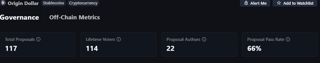 Voting power and unique addresses that have voted is no longer visible from the governance portal. However when looking at individual proposals, we noted that the address associated with the Origin team still has unilateral power to govern the protocol (can pass quorum alone).
