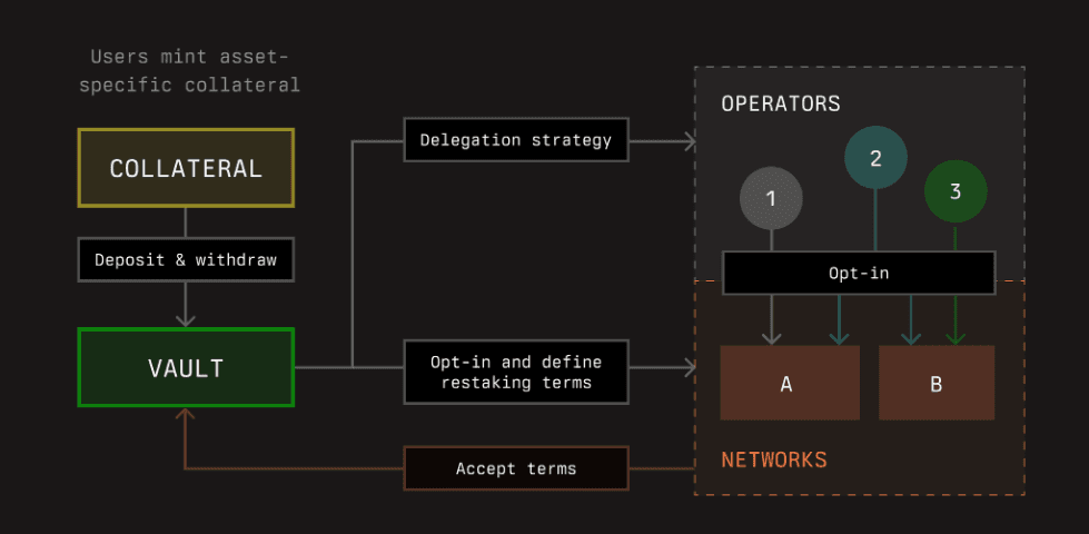 Operator-Specific Vaults: Operators can create vaults with collateral restaked to their infrastructure across different network configurations. Multiple vaults with varying configurations can be created to service clients without additional node infrastructure.