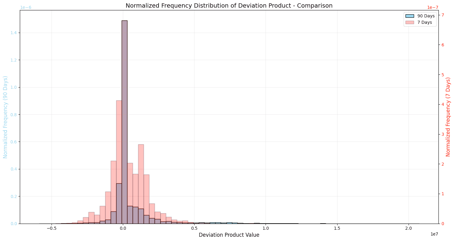 For both the comparisons, we need some kind of reference or benchmark and we use the larger time frame market performance as a reference. Here is a sample comparison of 90D vs 7D distribution: