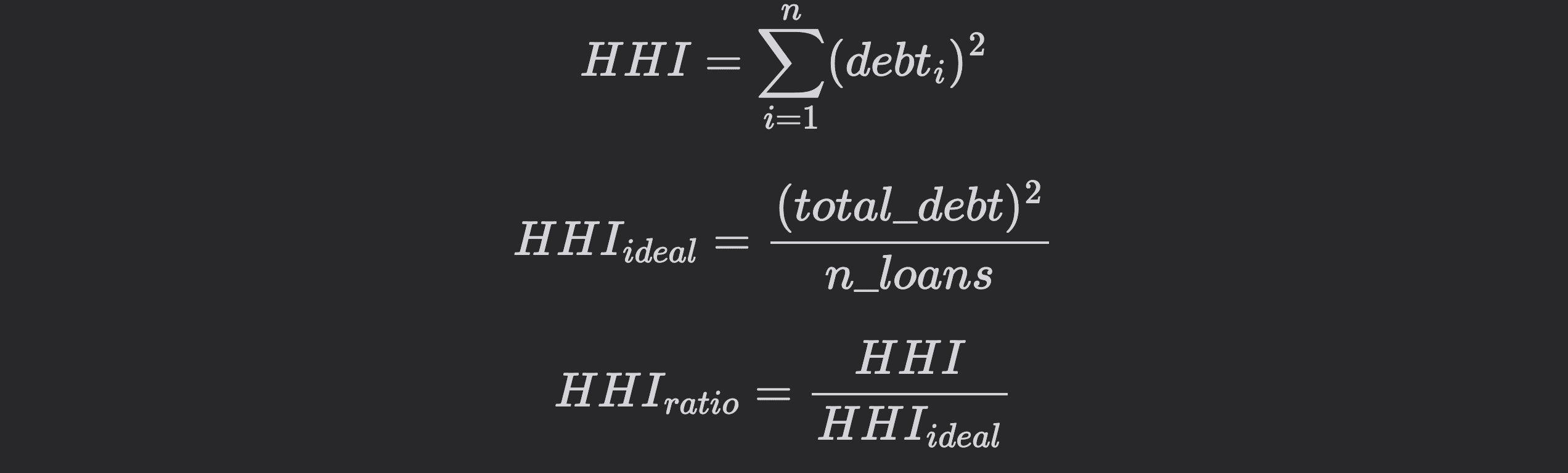 0.01 - 0.49 score: Linear interpolation between 110% to 106% deviation in borrower concentration