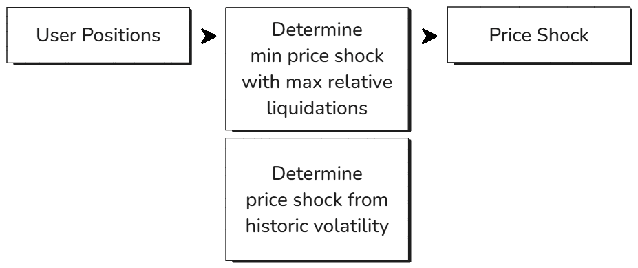 With a projected price shock value that accounts for liquidation pressure on significant markets, we can conduct the same steps as discussed in the general methodology to determine a scale value. First, we declare the following:
