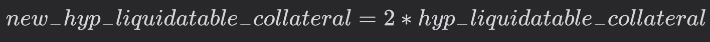 For the current collateral backing the current borrowing, if the liquidatable collateral is to be increased to (new_hyp_liquidatable_collateral - hyp_liquidatable_collateral_aave), the debt should be increased in a way where the final collateral backing it is equal to
