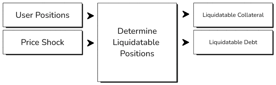 The function that determines these liquidatable positions works with an isolated or siloed market (e.g. crvUSD/LlamaLend) as well as pool-based lending markets where risk is shared across all the assets (e.g. Aave). A key component here is the market logic that determines if a user is liquidatable. This can vary from protocol to protocol and thus this step is market or protocol-dependent. It might even require additional inputs to determine the liquidatable positions.