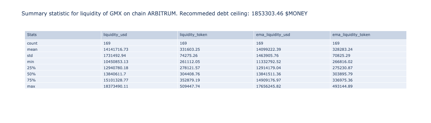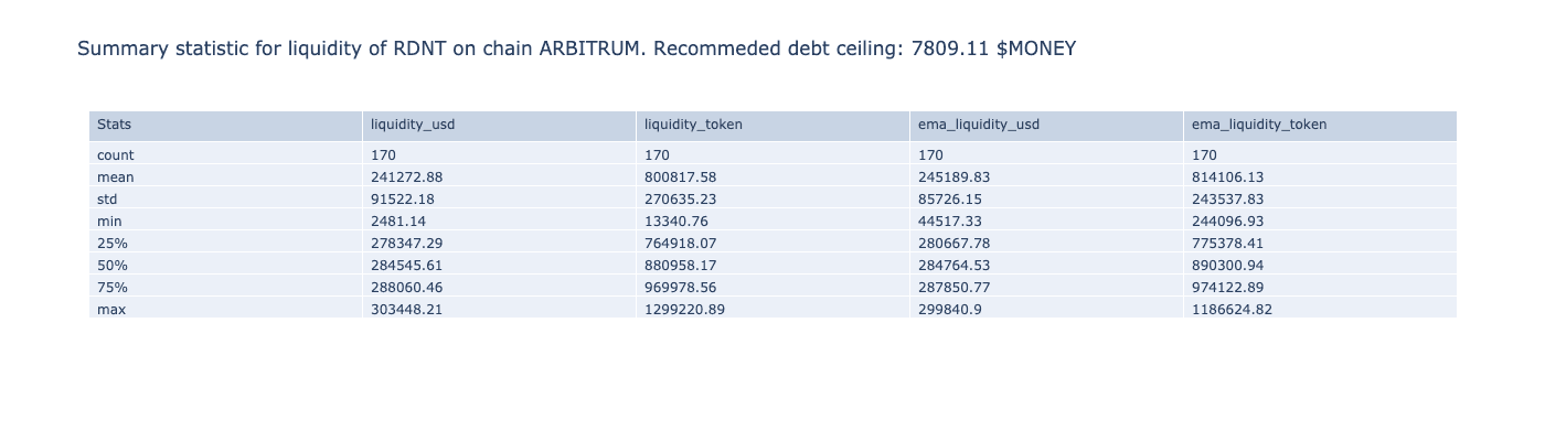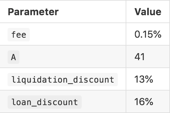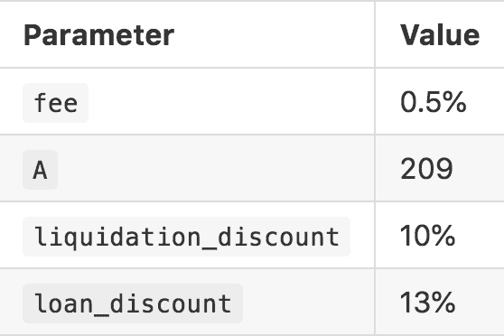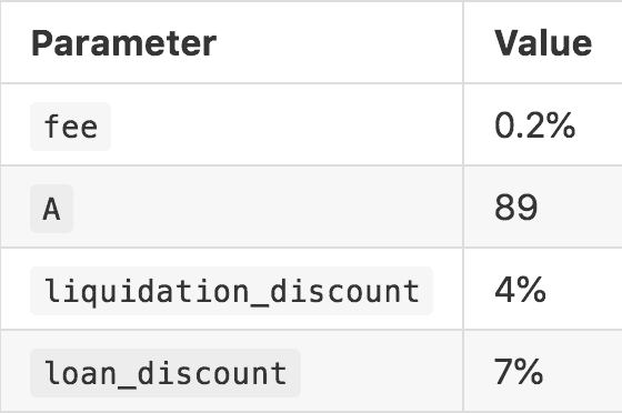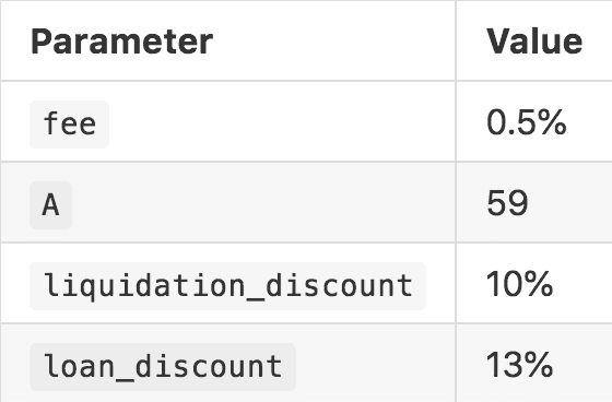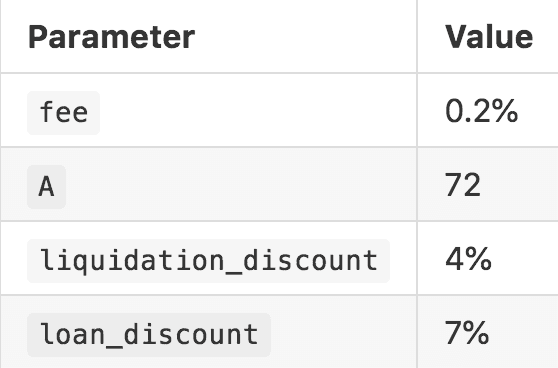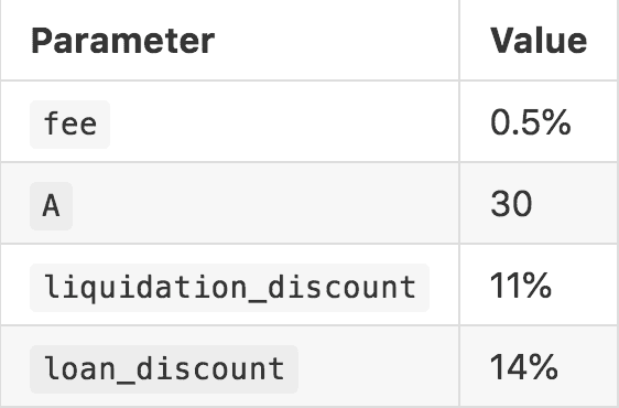 In order to provide an initial estimate for A, fee, loan_discount, liquidation_discount and debt_ceiling, we utilize existing simulation tooling and simple heuristics of on-chain liquidity conditions to arrive at relatively safe deployment parameters. The goal of this allow timely deployment of $MONEY markets for the launch of Defi.money.