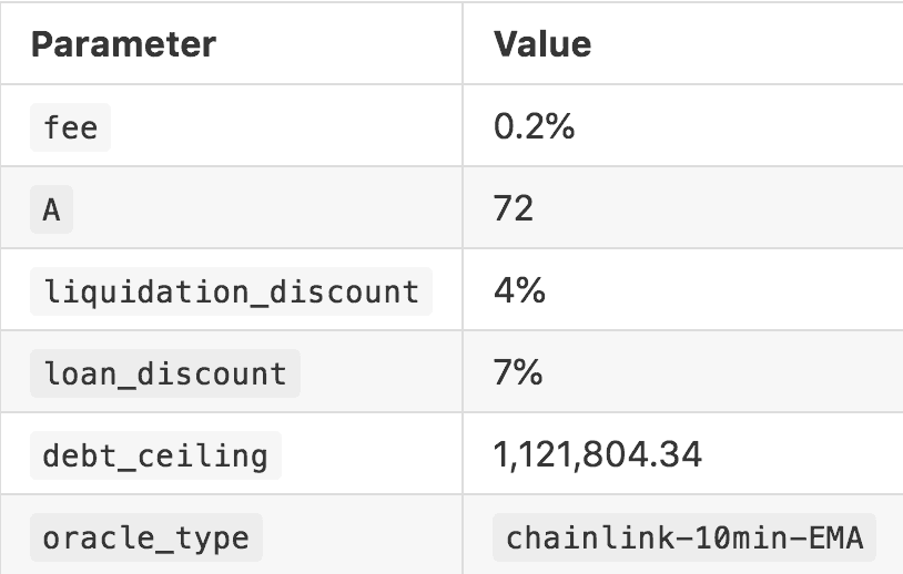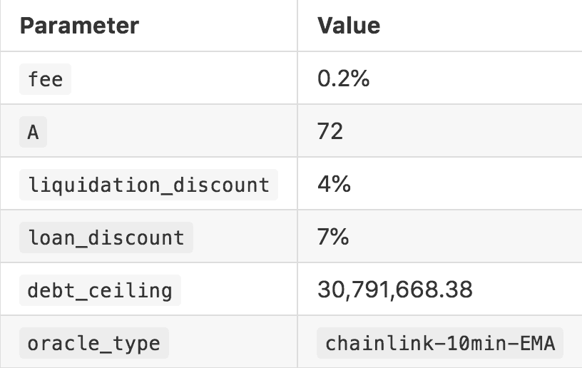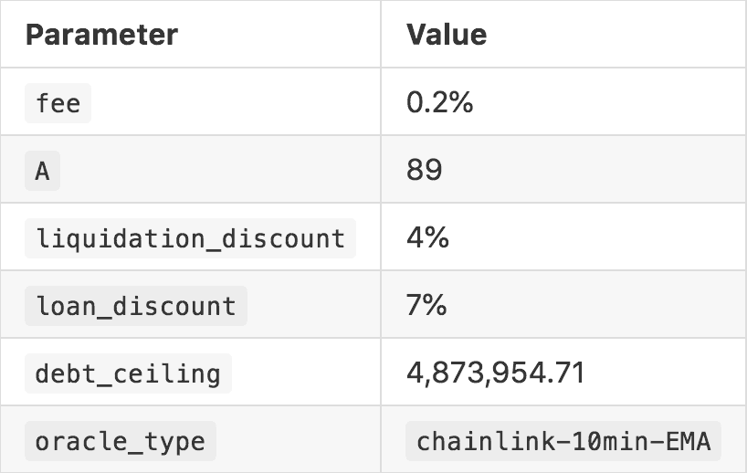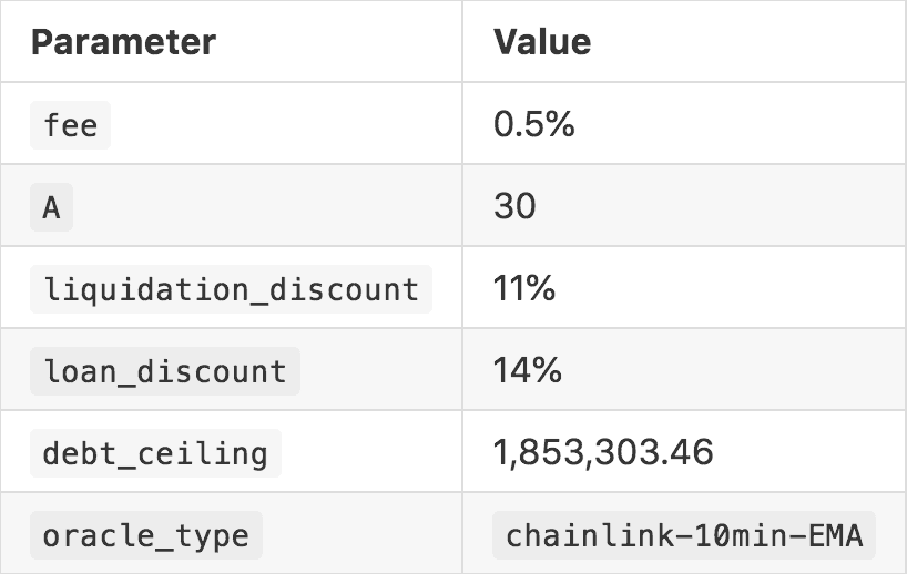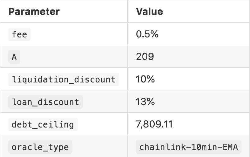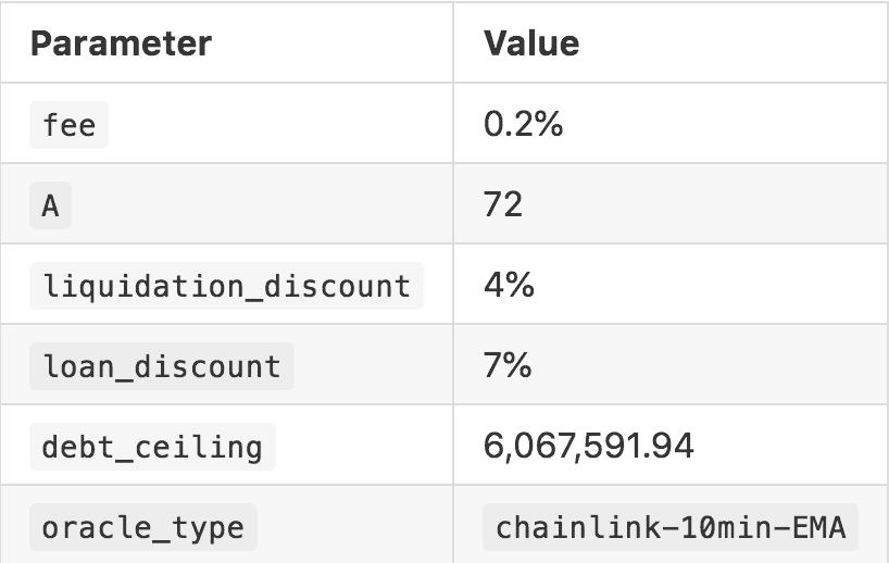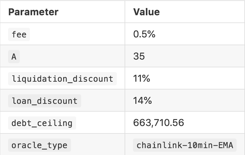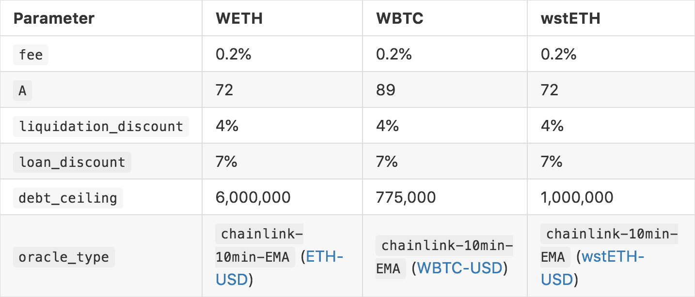 Note: The WBTC<>crvUSD market has been deployed with the following parameters: