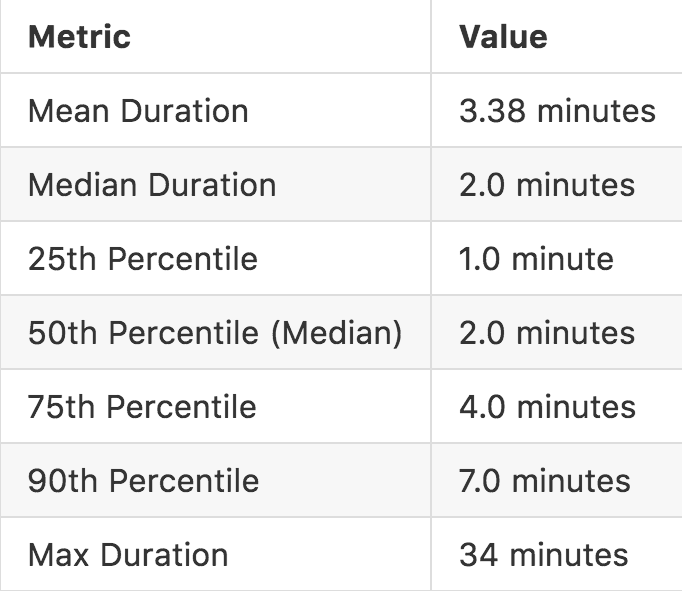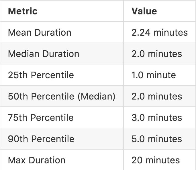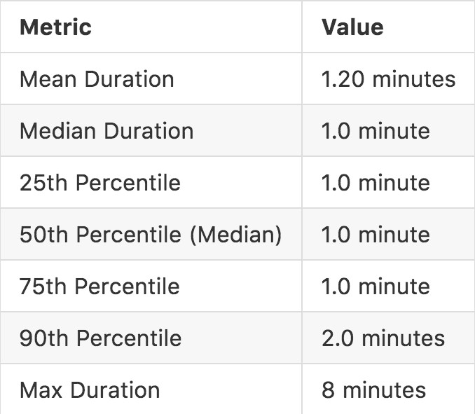 25th Percentile: Indicates that 25% of the time, the price remained unchanged for 1 minute or less.