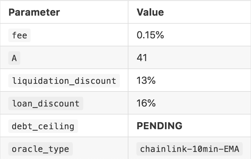 Note: The crvUSD<>WETH market has been deployed with the following parameters: