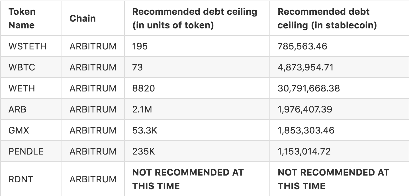 #3.1.2 Recommended debt ceiling for collateral tokens on Arbitrum