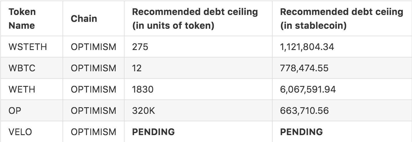 #3.1.1 Recommended debt ceiling for collateral tokens on Optimism
