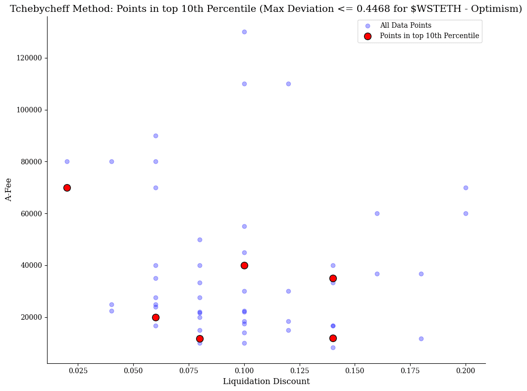 $wstETH similarly produced stable results with minimal bad debt across the scenarios tested. The top 20th percentile configuration offers a good balance between risk and profit, supported by a recommended debt ceiling of 1,409.46 wstETH (4.5M MONEY).