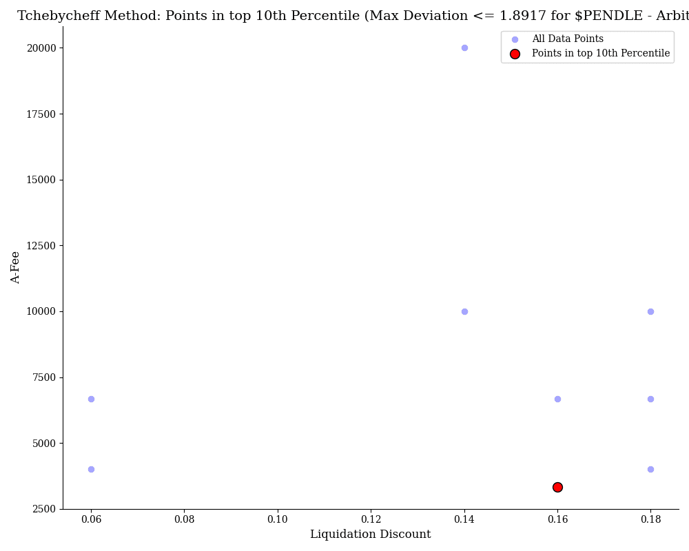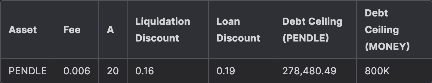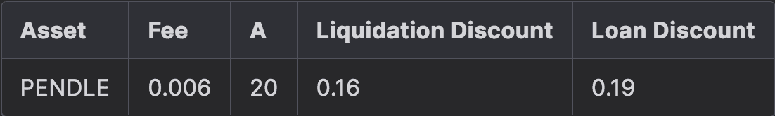 $PENDLE's performance, though adequate in some cases, showed high deviation in optimization outcomes, indicating limited viable solutions. Liquidity curves are thin, with a debt ceiling of 278,480.49 PENDLE (800K MONEY) indicating that the market may not support large swaps without significant slippage. Given these concerns, we advise against continuing with $PENDLE.