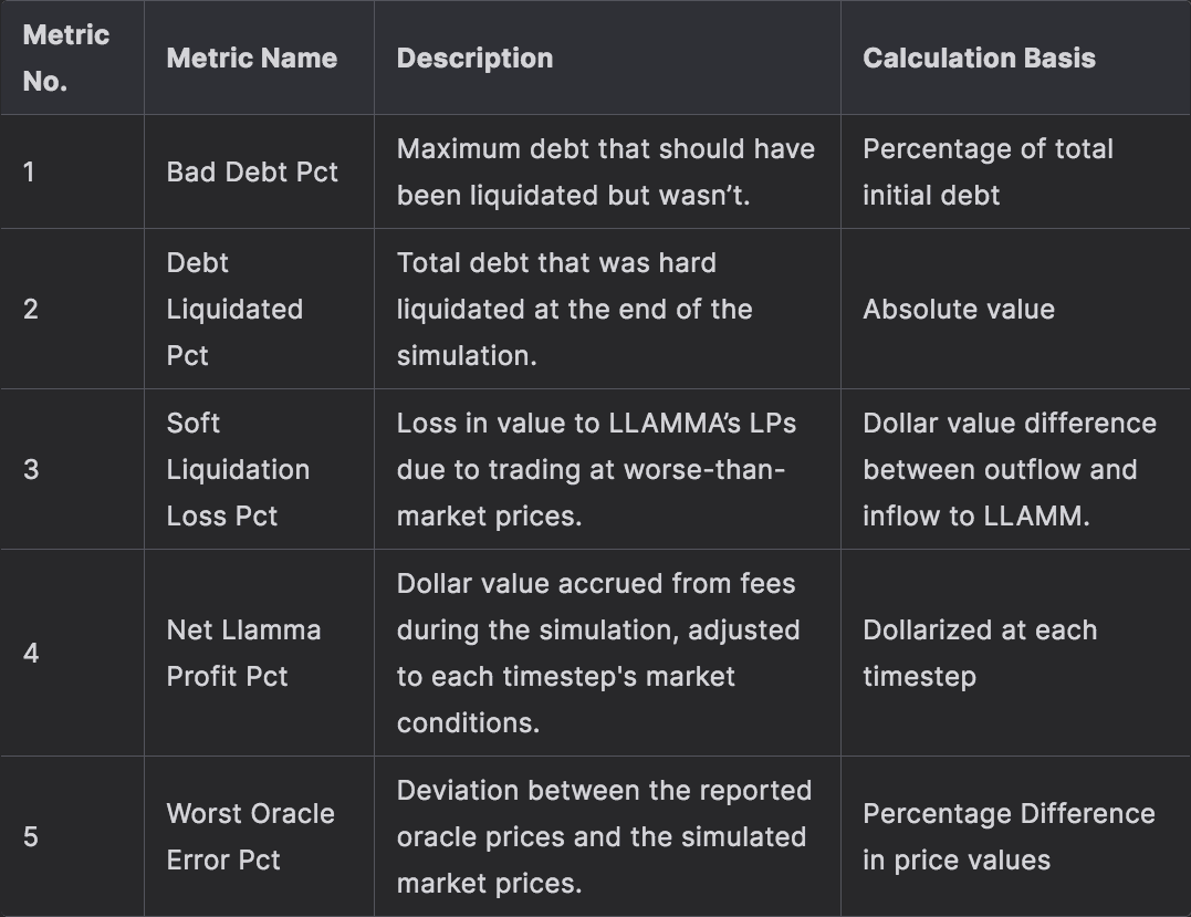 The metrics for the simulation are succinctly summarized and captured in the table below: