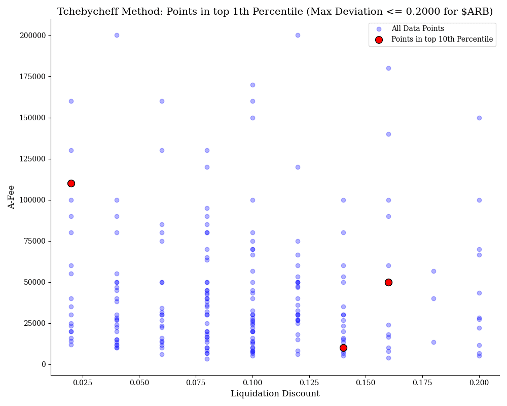 $ARB demonstrated a strong performance in our analysis, with favorable results across all constraints. The optimization process yielded a robust configuration with limited deviations, and the liquidity curve indicates that $ARB can accommodate sizable swaps before encountering steep slippage. A debt ceiling of 10,460,832.55 ARB is recommended to balance liquidity and price impact.