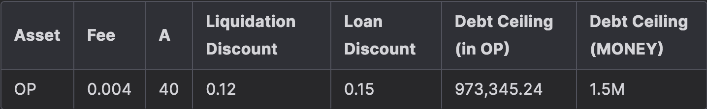 Recommendation: We recommend onboarding $OP with the parameters and debt ceiling provided.