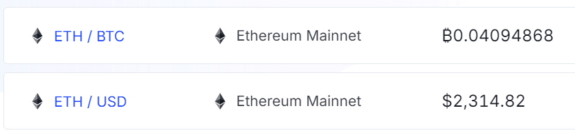 Live Chainlink's market rate feeds for some ETH pairs. Source: Chainlink, September 11th, 2024