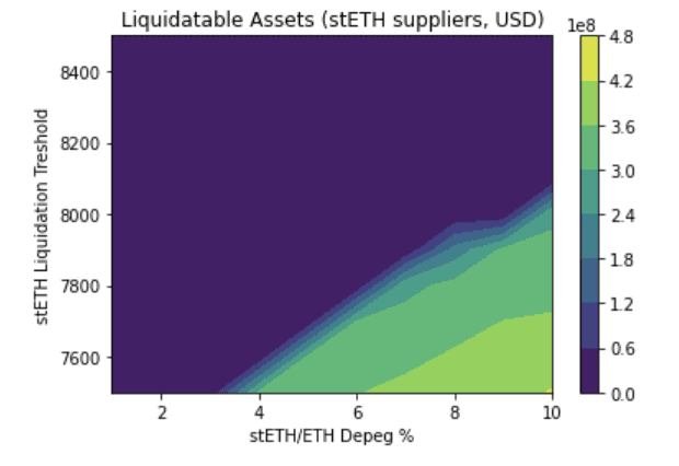 Estimated liquidations with an LT of 75%. Source: Aave Governance Forum, 14th of May, 2022